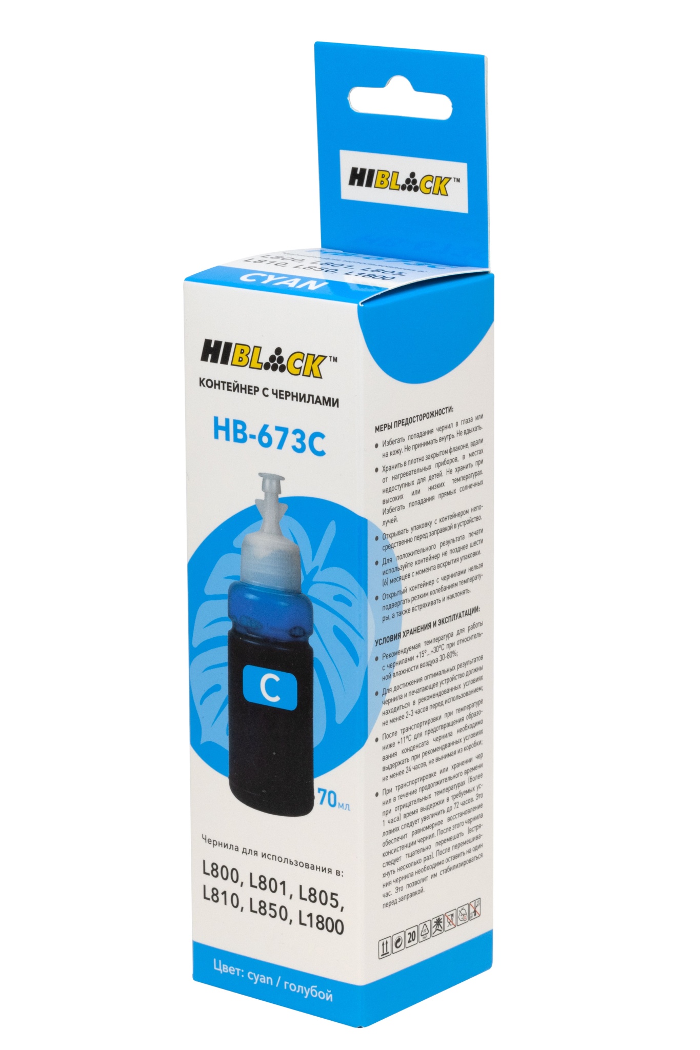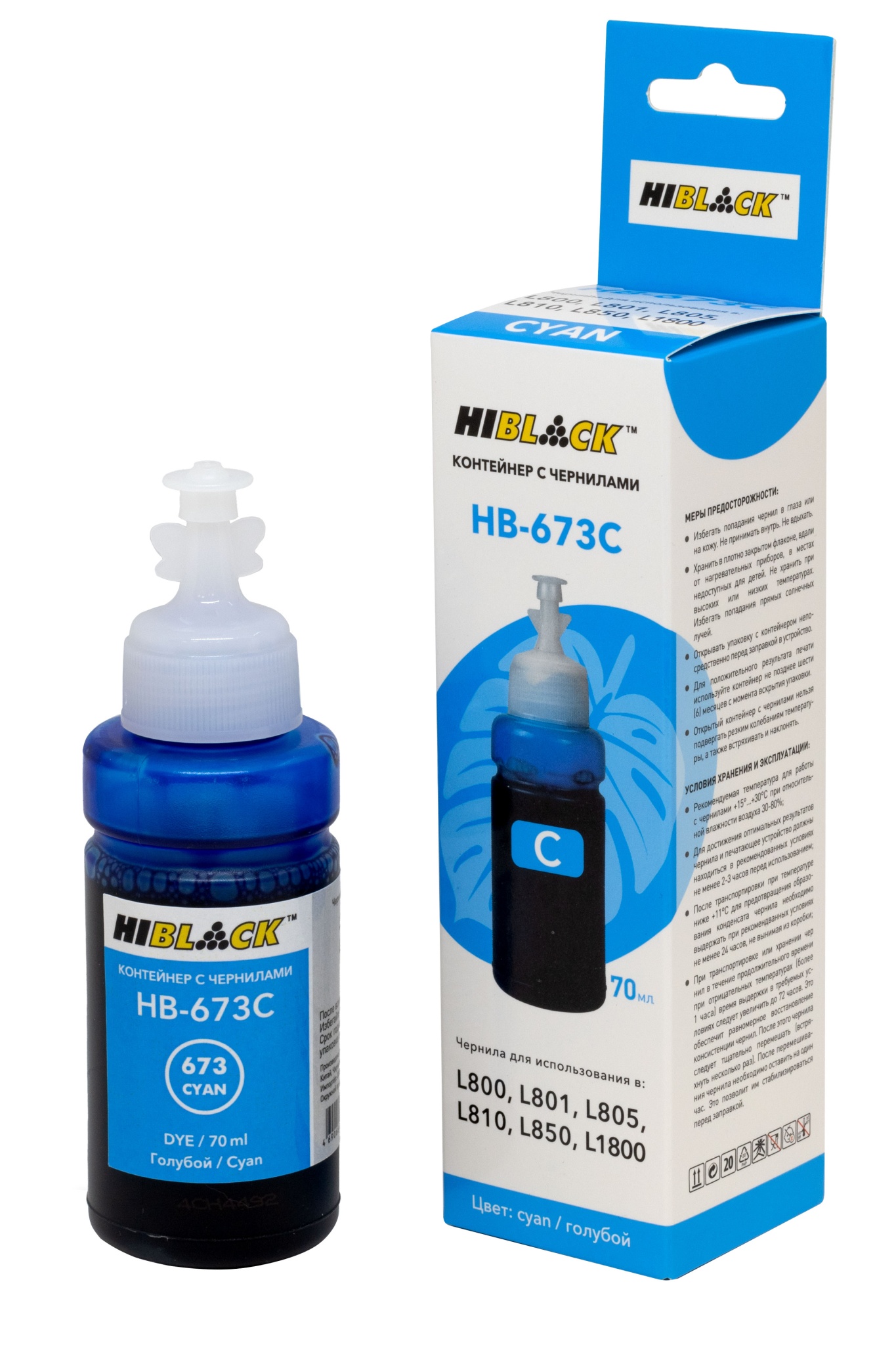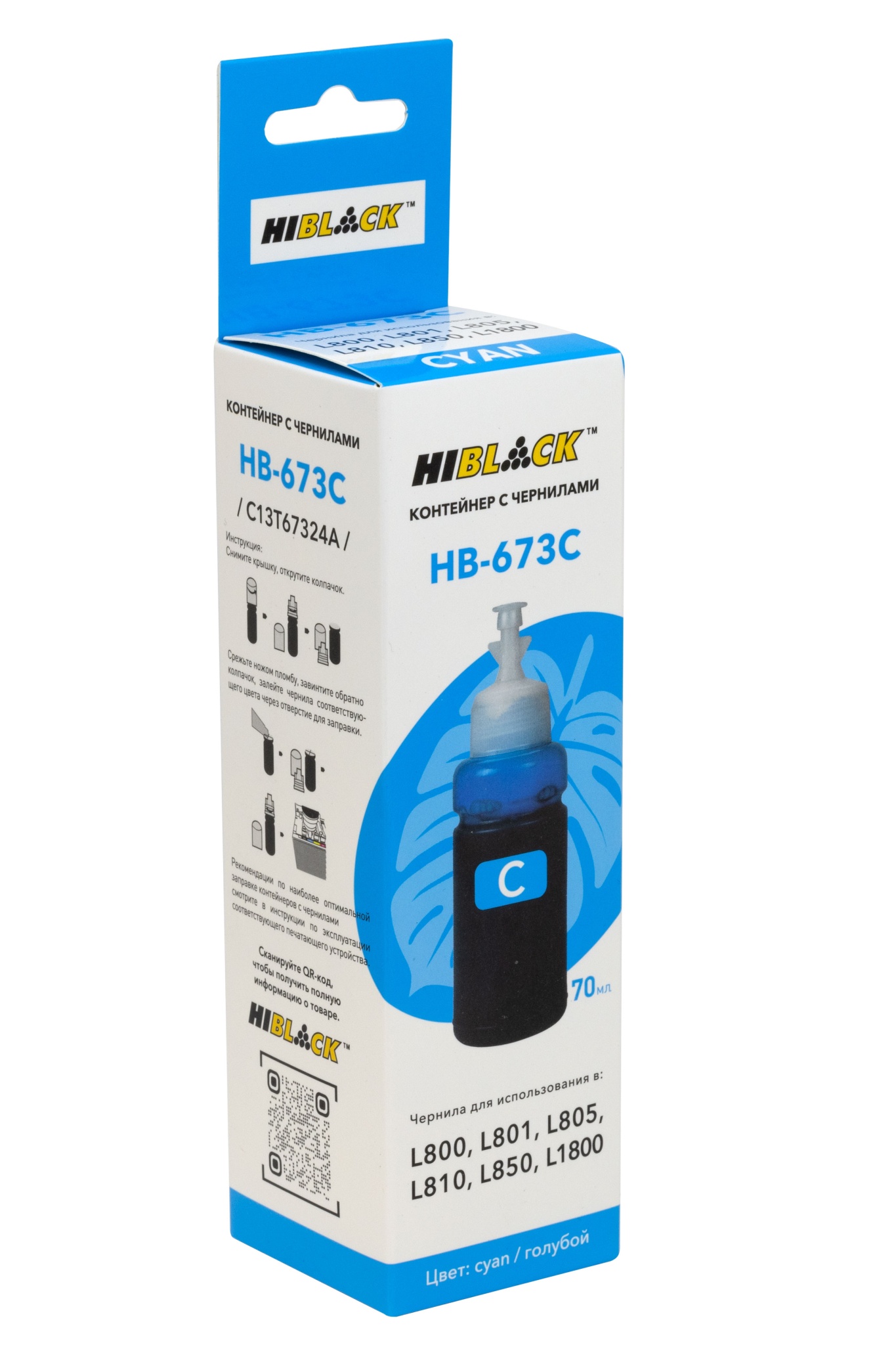 Контейнер с чернилами Hi-Black (HB-673C) для Epson L800/ L801/ L810/ L850, голубые, (70 мл.), C13T67324A