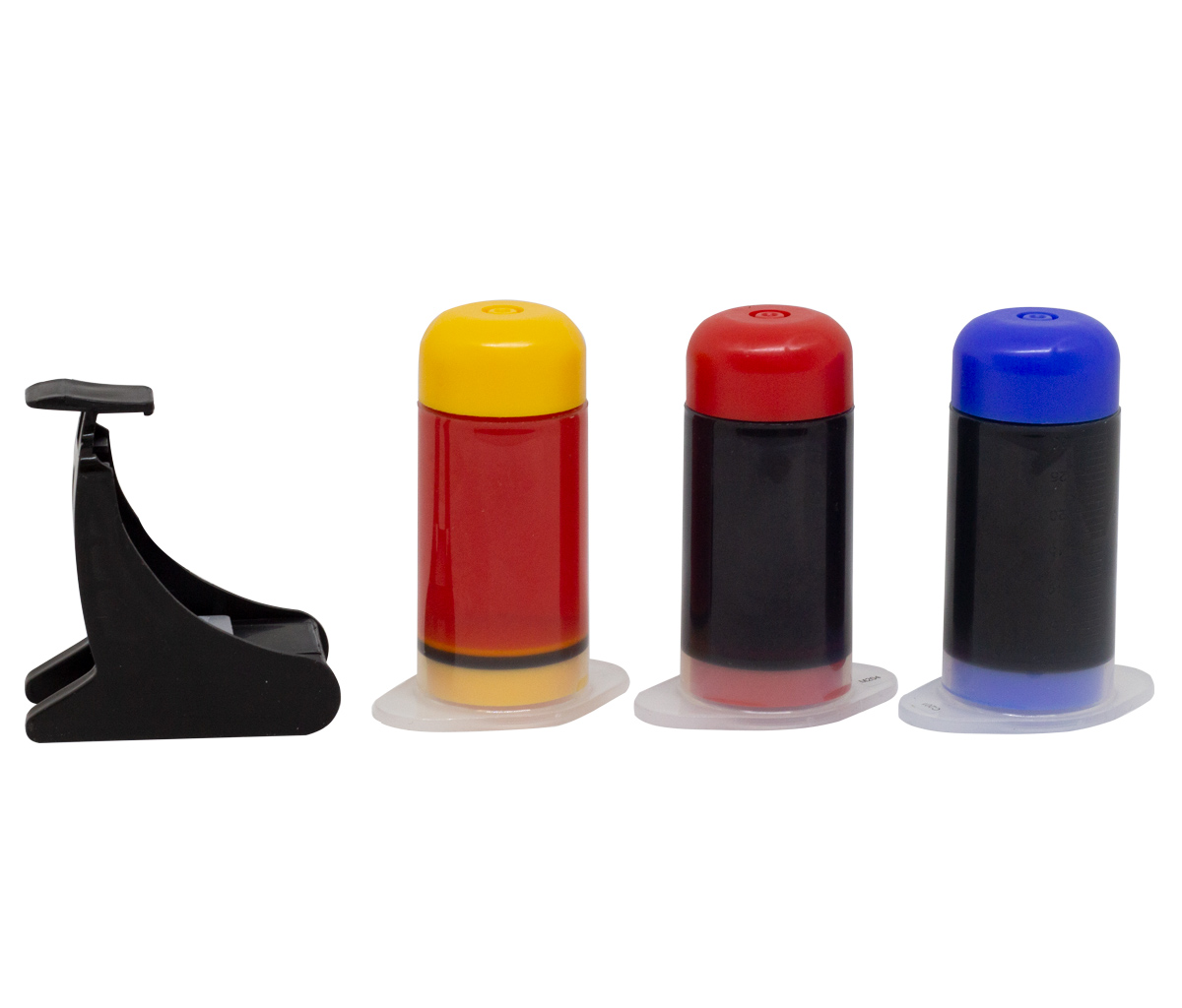 Характеристики: В наборе 3 флакона с заполненными чернильницами. Флакон чернил голубого цвета 30 мл - 1шт., Флакон чернил жёлтого цвета 30 мл. - 1шт.; Флакон чернил пурпурного цвета 30 мл - 1шт.